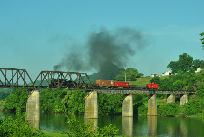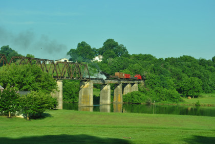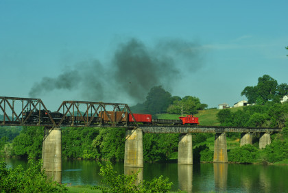 The photo runby of the freight train from the deck. I thanked the lady again for letting me use the deck and I re-located along the road for the next set of runbys.