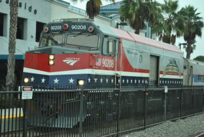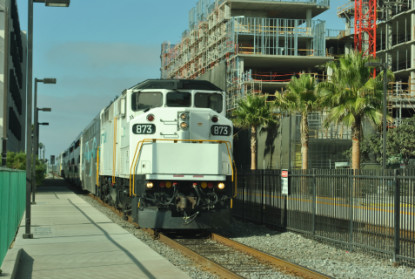 Two views of Metrolink 673X. I decided to walk to the west side of the station for a front view of the train. As I did that, Metrolink 857 bound for Oceanside was also leaving the station.