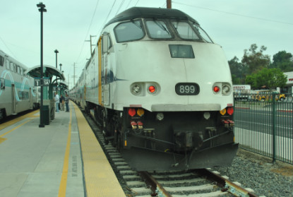 I decide to take pictures of the Metrolink Special Los Angeles Rams Football Trains by riding one of them this season. Since they run on my Orange County Line, I could catch it in Laguna Niguel on one of the Sundays it ran during the Rams Home NFL season in 2017. I decided on November 12, 2017 for my trip and asked Robin Bowers to join me. To get my rail mileage we decided to take Pacific Surfliner 562 from Santa Ana south to Oceanside, then Metrolink 661 to Laguna Niguel where we would catch the LA Rams Special Train 673X to Norwalk, then take Metrolink 662 back to Oceanside, then back to Santa Ana on Metrolink 665 as I almost always do. I rode trains up until that Sunday morning when I met Robin at Santa Ana for the first leg of our trip and bought our Metrolink Sunday Pass.