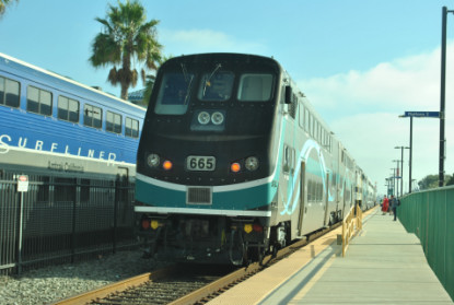 Metrolink 665 had a cab car leading then a coach, an engine then a second cab car, three more coaches and a second engine.