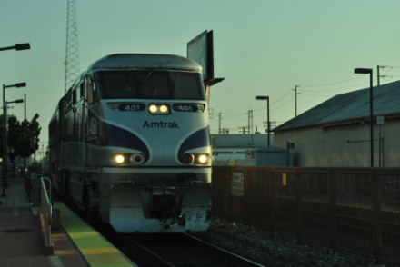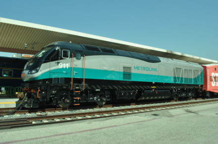 CP Pacific at the south end of the Oceanside station leading to the Track 3 platform that many trains use during the day as the platform in front of the Oceanside station was closed for construction. My Metrolink train 661 is also is in the picture ready to take me to LAUPT this morning. I boarded a busy train and took a table on the inland side. We stopped at the San Clemente Pier, San Clemente North Beach, San Juan Capistrano, Laguna Niguel, Irvine, Tustin, then had to flag McFadden Street in Santa Ana before we arrived at that station. Robin soon joined me and we stopped in Orange, Anaheim, Fullerton, Buena Park and Norwalk/Santa Fe Springs.