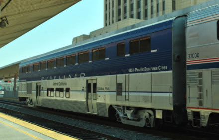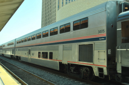 Amtrak Coast Starlight Business Class Car 34515 built by Bombardier in 1995 as a 74-seat coach. It was converted to a family coach in 1996 and renumbered 34512. Sometime in 2008-2009, the lower level of the car was equipped with video arcade games. Amtrak has since returned these cars to regular coaches, having replaced the arcade on the lower level with the normal 12 coach seats found in normal Superliner coaches, still retaining the number 34515.