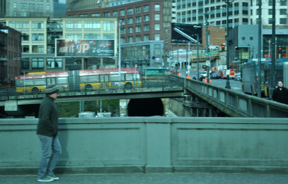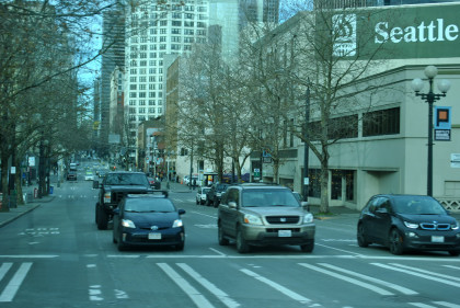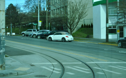 On 5th Avenue, you can see the tracks of the old Waterfront Streetcar that once ran in Seattle. It is a shame that the City of Seattle did not keep this operation going because it was always fun to ride.