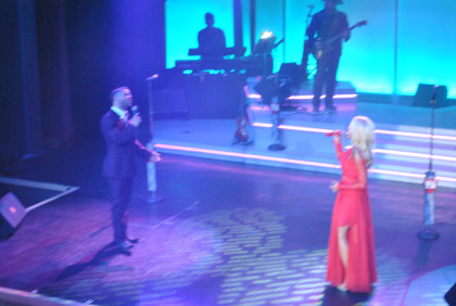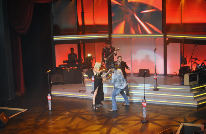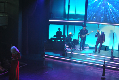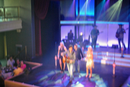 Our group at table 34. After my meal and after Alex Mayes had told me the balcony was a far better place to take pictures of the show, I decided to go up there to watch.