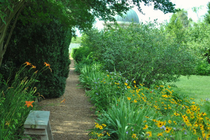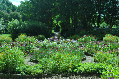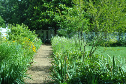 GroundsThe site today covers 1,120 acres, which includes the original 1,050-acre tract of Jackson's plantation. It is overseen and managed by The Andrew Jackson Foundation, formerly called the Ladies' Hermitage Association. The mansion is approached by a cedar-lined, 10-foot wide, guitar-shaped carriage drive, designed by Ralph E. W. Earl. The design made it easier to maneuver carriages in the narrow space. To the east of the house was a one acre formal garden designed by Philadelphia-based gardener William Frost in 1819. Laid out in the English four-square kitchen garden style, it consists of four quadrants and a circular center bed contained by unusually long, beveled bricks and pebbled pathways. Originally the garden was used to produce food for the mansion and secondarily as an ornamental pleasure garden. The garden is surrounded by a white picket fence. On the north perimeter stands a brick privy that served as a status symbol and garden feature.