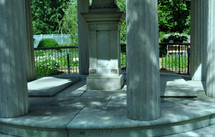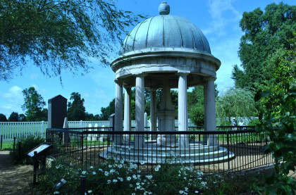 After Rachel Jackson died in 1828, Jackson had her buried in the garden she loved. When he had the house remodeled in 1831, Jackson also had a classicizing "temple & monument" constructed for Rachel's grave. Craftsmen completed the domed limestone tomb with a copper roof in 1832.