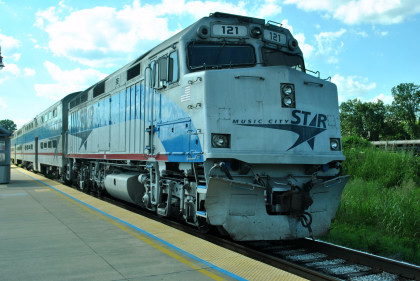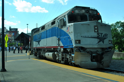 Music City Star F40PH 121, originally Amtrak 398, built by Electro-Motive Division in 1985. We boarded the train and it left at 3:20 PM.