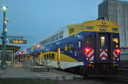 I arose at 4:30 AM and left Motel 6 by 4:50 AM to make my 5:22 AM train out of the 28th Street station in Bloomington. I bought my Day Pass just as the 5:00 AM train was leaving but it did not matter. I waited and the minutes went quickly by and the train arrived on time. I sat back and enjoyed the early morning ride on the Metro Blue Line to Target Field station. Once there on time, I bought my round-trip Northstar Commuter train ticket and went down the stairs and had it checked before I boarded the Northstar cab car 603 to Big Lake this morning.