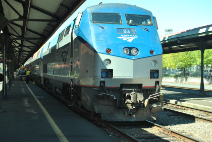 Coast Starlight 11 7/30/2017They scanned my ticket with the sleeping car passengers and then waited for the door to be opened. Train time came and went. Then came the announcement that the Coast Starlight would be late and I found out they had two cars they had to be replaced. The train reversed in at 9:38 AM and soon we were allowed to board. I took my usual rear seat on the west side of the train and I had Amanda as my car attendant. The train left at 9:58 AM {9:35 AM}, 23 minutes late and I was heading home.
