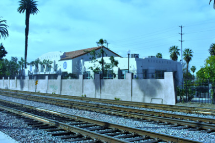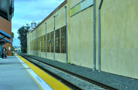 This is the grade of the Southern Pacific line in Riverside. We walked over to next building to photograph.