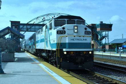 Metrolink 734 turning into Metrolink 735 at the South Perris storage yard.