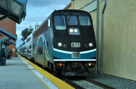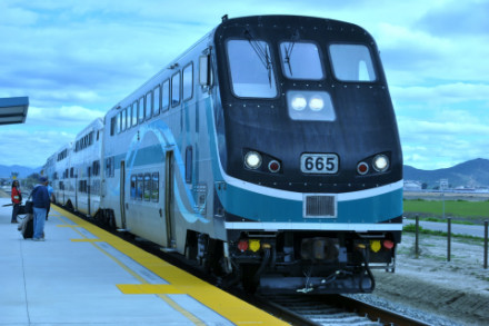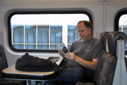 Metrolink 733 arrived. We waited until the doors reopened and rode the bicycle car, sitting at tables across from each other.