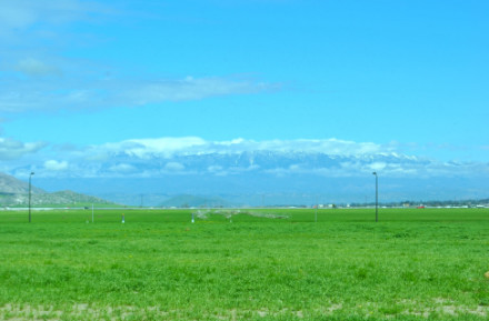 Pretty mountains on a beautiful day. I used the machine to get some cookies and sat on a bench awaiting our departure time.