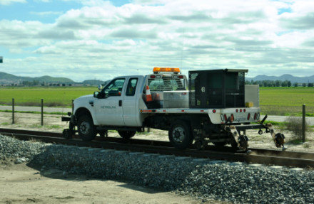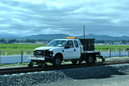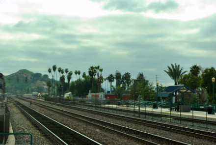 First a Metrolink truck came spraying something on the rails. Next we watched the bus come and go then the Sherrifs briefly visited. The Metrolink truck got off the tracks and then Metrolink 735 left the storage tracks. We noticed that the station clocks were off by six minutes which I reported to my excellent conductor on my return trip to Riverside.