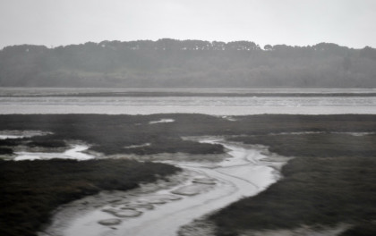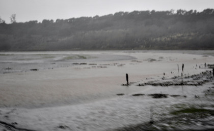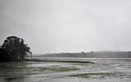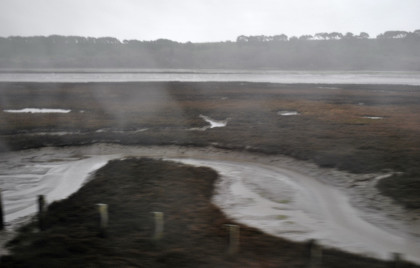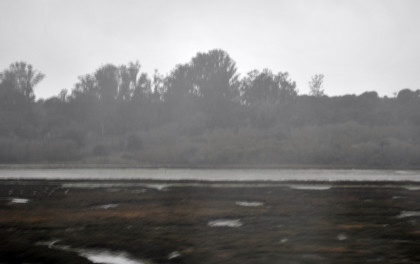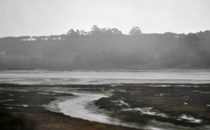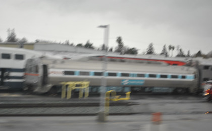 Elkhorn Slough on this rainy afternoon. The train ran on to Salinas where we departed at 4:15 PM {11:48 AM} 4 hours and 27 minutes late. I wrote the story and did the pictures so I could upload when I get home tomorrow. I had a 5:30 PM dinner reservation and was seated with a coach passenger. Tonight I just had the steak. We made it to Paso Robles and left there at 6:15 PM (1:38 PM}, 4 hours and 37 minutes late. I decided to try to sleep for a while so I made the bed and took a nap. While I was asleep we stopped at San Luis Obispo 7:46 PM {3:20 PM}, 4 hours and 26 minutes late; Santa Barbara at 10:35 PM {6:02 PM}, 4 hours and 43 minutes late; Oxnard at 11:19 PM {7:05 PM}, 4 hours and 14 minutes late, and Simi Valley at 11:19 PM {7:46 PM}, 3 hours and 43 minutes late. It was here that I got up and Louie made up my room.