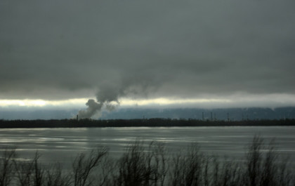 The Columbia River as we closed into Vancouver which we departed at 1:45 PM {12:58 pm} .