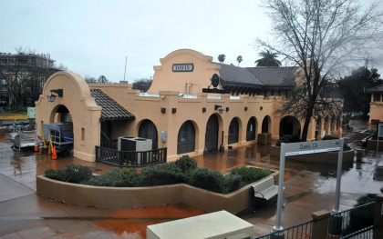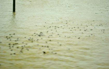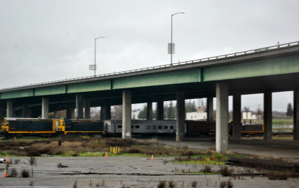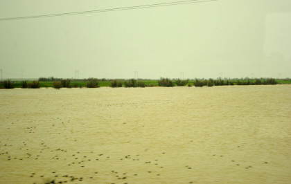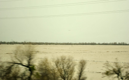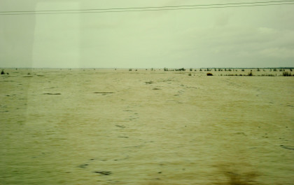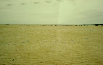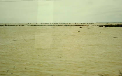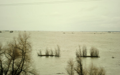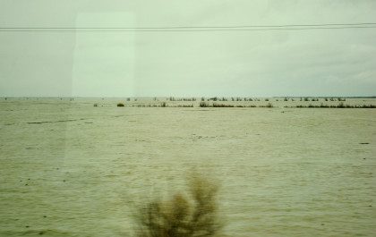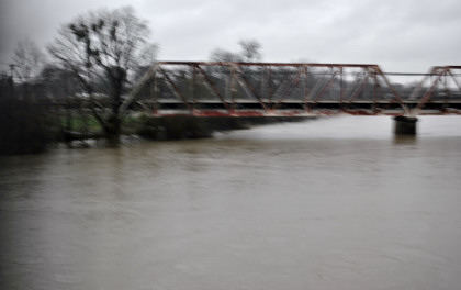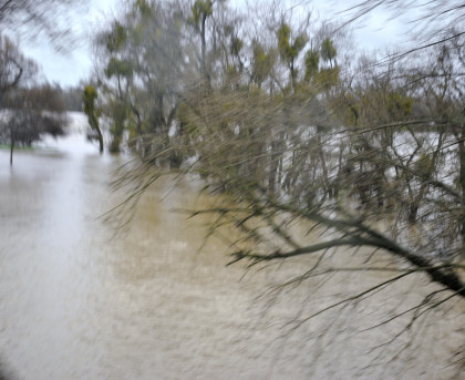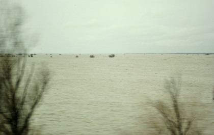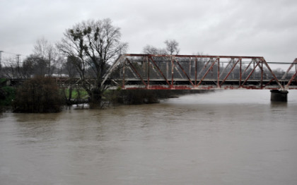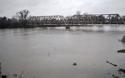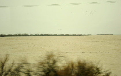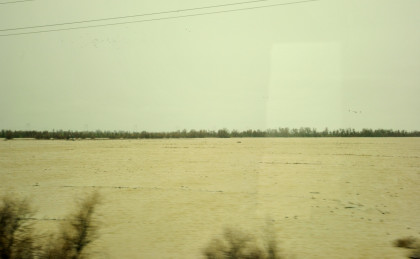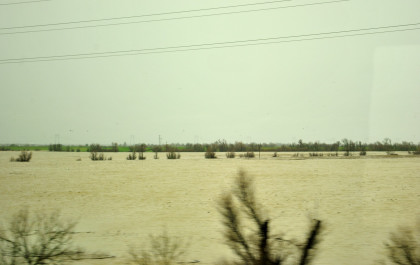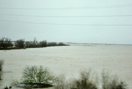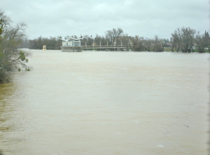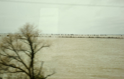 The crossing of the Yolo Bypass. This is the first time in 11 years that the Yolo Bypass has been used to keep flood waters out of Sacramento.