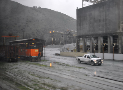A Conrock switcher at their plant. We were delayed by maintenance workers clearing off the tracks south of Watsonville Jct. as they are cleaning off the tracks from debris that flooded onto them.