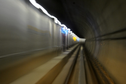 The train is making its way to the Evergreen Tunnel that takes it underneath homes and descends to the valley where the CP Rail mainline is.