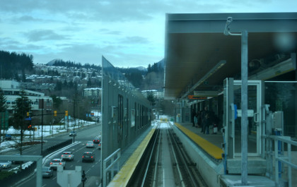 Coming into Moody Centre station which is the first connection to the Westcoast Express on weekdays only.