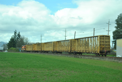 The Hillsboro Southern Pacfic station. We left Hillsboro and started toward Forest Grove, saw a great-looking railroad trestle and said that we wished we could photograph a train on it. It was at this time that we saw a local heading from Hillsboro to the end of the line at Stimson. We quickly stopped at the grade crossing on SW 345th Street to catch the train.