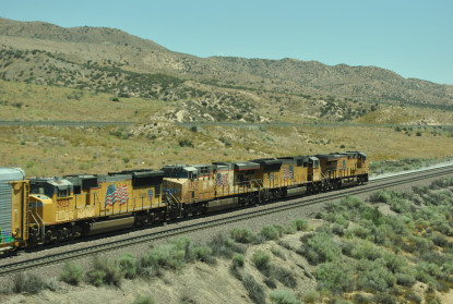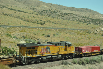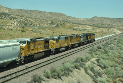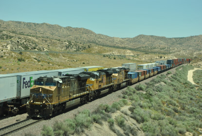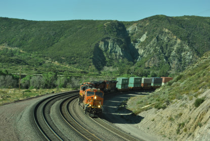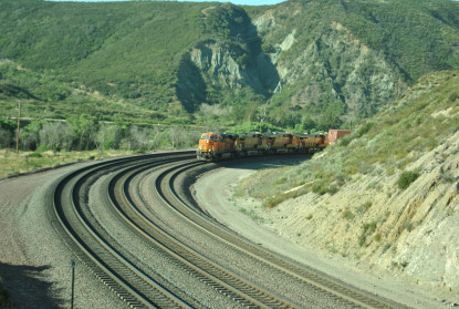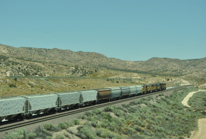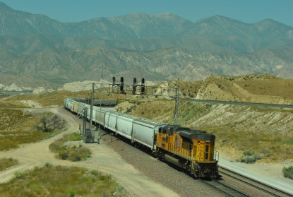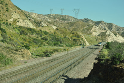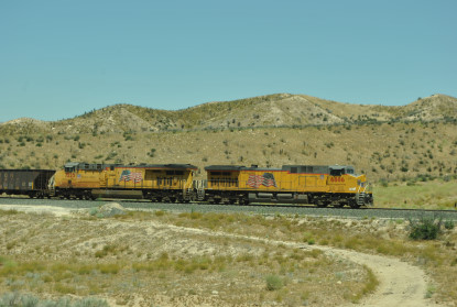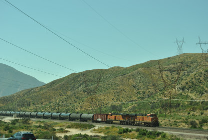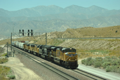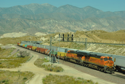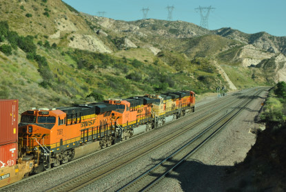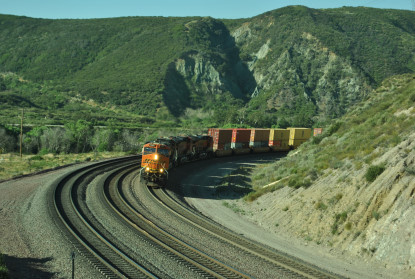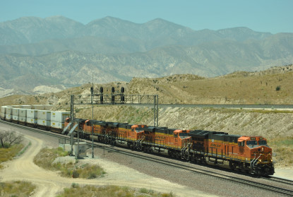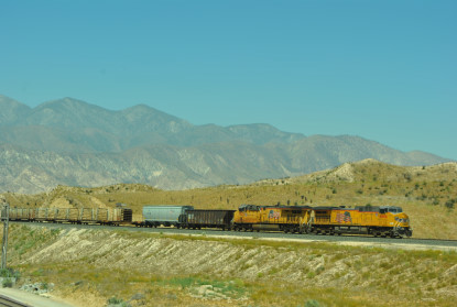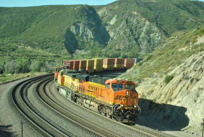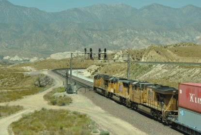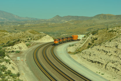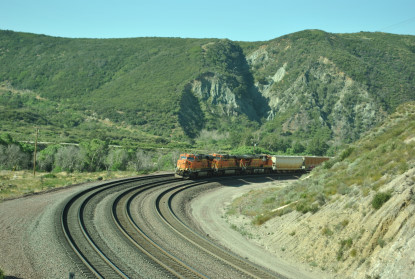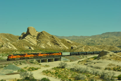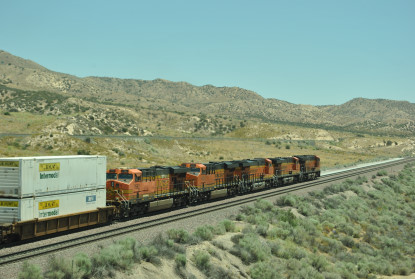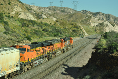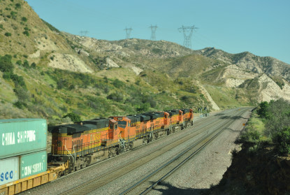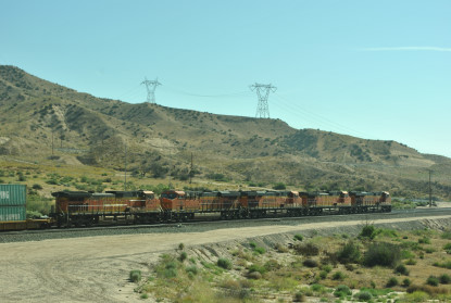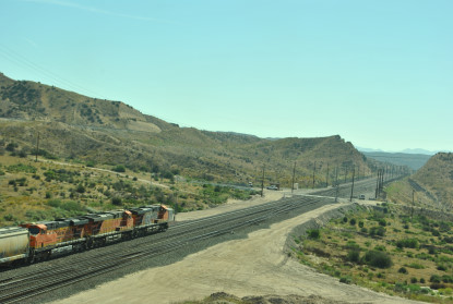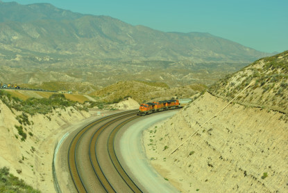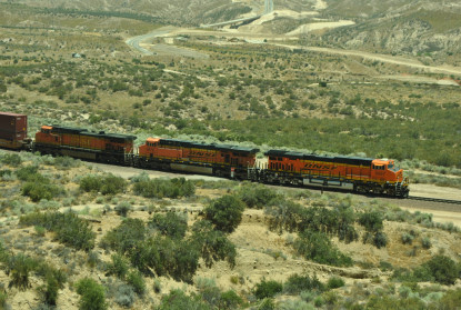 BNSF 7778 East was at West Colton Yard this morning. Would we see him later? From here we drove to Swarthout Canyon Road just as a westbound train was approaching.