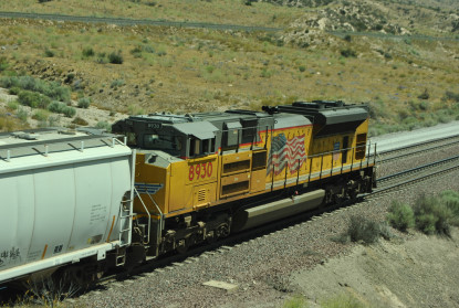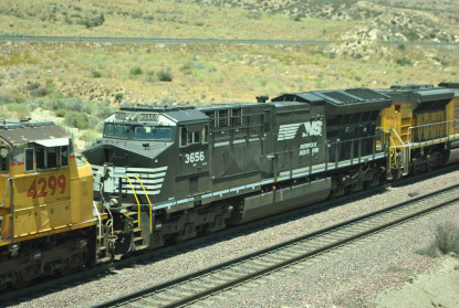 Union Pacific 8545 East with Norfolk Southern ET44AC 3656 in its consist.