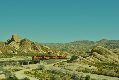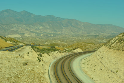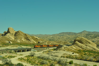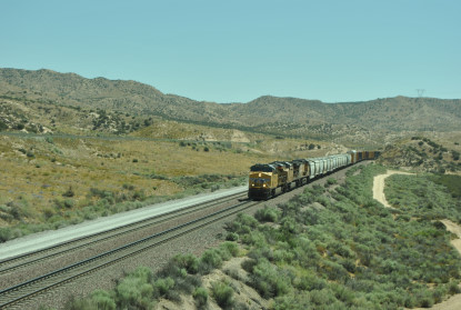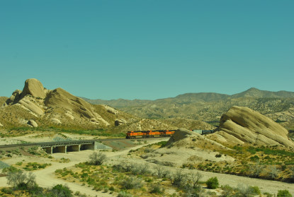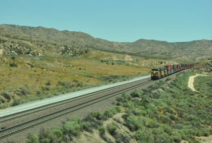 BNSF 8255 East. We drove to McDonald's at Cajon Junction so I could purchase hot cakes and sausage to go then went to Summit to see the changes after the road constructed finished. California Highway 138 is now much straighter and about three minutes faster. We parked at the east end of the new highway cut and walked up to the old viewpoint, which is half the size of what it used to be.