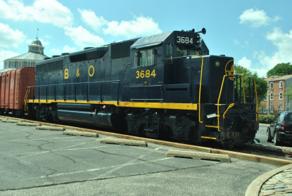 3684 was the very first of the 380 GP40 locomotives ordered by the B&O in 1966, which had the largest fleet of this types in the country. They were versatile locomotives at handling manifest and heavy tonnage trains. 3684 was later repainted in CSX's colors and was restored to its original B&O paint scheme by the B&O Railroad Museum in 2006.