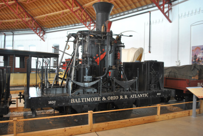 Replica of Baltimore and Ohio "Atlantic". The original "Atlantic" 2 was an 0-4-0 built in 1832 by Phineas Davis and Israel Gartner of York, Pennsylvania, after winning the competition to design a suitable locomotive for the line. It was scrapped in 1835. This "Atlantic" is actually the "Andrew Jackson" 7, built at the Mt. Clare shops in 1836 by Ross Winans and George Gillingham, and adapted in 1892 to resemble "Atlantic" 2 for the 1893 Columbian Exposition in Chicago. It appeared at the Fair of the Iron Horse in 1927.