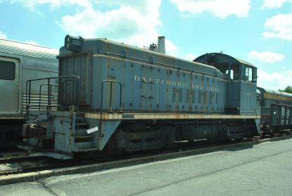 Baltimore and Ohio SW900 9408 1956, nee Baltimore and Ohio 633 built by Electro-Motive Division in 1955. It was retired in 1991 and donated to the museum the following year then was restored to its original livery and number in 1994.