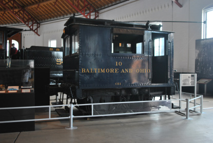 Baltimore & Ohio Railroad boxcab electric CE-1 10 built by General Electric in 1909 to work at the railroad's Fells Point terminal in Baltimore where, in 1860, the B&O built a network of track along the waterfront. The track was laid in a three block area and served the warehouses on the waterfront. The track laid at Fells Point could only be reached by tug boat and car float from Locust Point, which was across the harbor. Originally, the terminal at Fells Point was operated by horses because of an 1831 city ordinance prohibiting steam power on the streets. In 1896, the B&O decided to use electricity, which was a new form of power for the railroads. The B&O tapped into the nearby streetcar line and placed trolley wires over the tracks. They also purchased a five-ton single truck electric locomotive from General Electric.