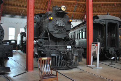 The museum houses collections of 19th- and 20th-century artifacts related to America's railroads. The collection includes 250 pieces of railroad rolling stock, 15,000 artifacts, 5,000 cubic feet of archival material, four significant 19th-century buildings, including the historic roundhouse and a mile of track, considered the most historic mile of railroad track in the United States. Train rides are offered on the mile of track on Wednesday through Sunday from April through December and weekends in January.