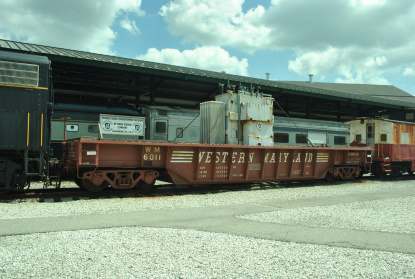 A heavy load on this Western Maryland 50 foot well flat car 6011 built by Greenville Steel Car Company in 1953 and was transferred to the museum in 1992.