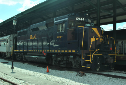 CSX GP30 4253, nee Baltimore & Ohio Railroad 6944 built by Electro-Motive Division in 1962. In 1996, it was retired and was donated to the Baltimore & Ohio Railroad Museum. The original number and paint scheme were reapplied in 1996.