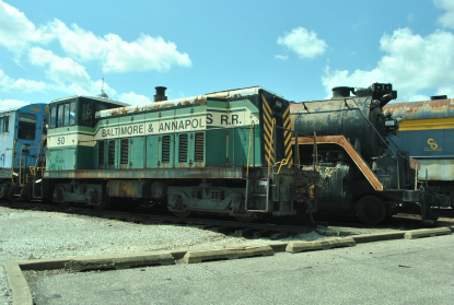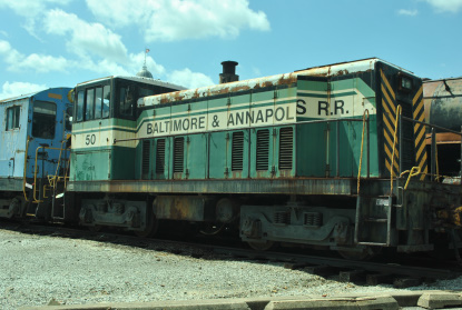 Baltimore & Annapolis Railroad 70 ton switcher 50 built by General Electric in 1950 and was the company's only freight hauling locomotive. The Baltimore & Annapolis started operations in 1887 as a steam railroad, connecting Annapolis and Baltimore via the B&O's Curtis Bay branch. Freight service ceased in 1968 when the operator's trestle rail bridge over the Severn River was declared unsafe. 50 remained in service on the Baltimore & Annapolis until June 1986 when the line ceased operations and it was donated to the museum.