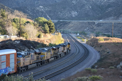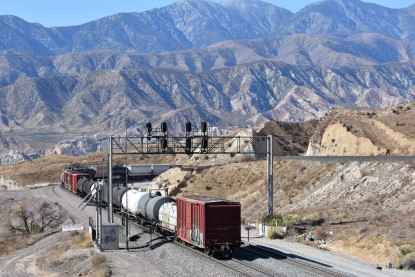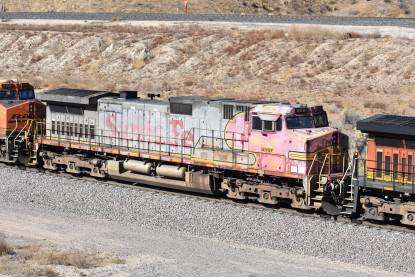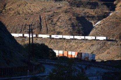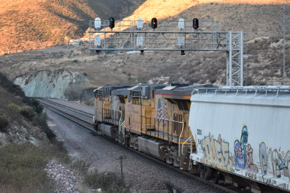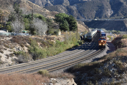 Bill Compton and I planned a Cajon Pass trip for Saturday, November 18, 2018. The day before, I passed my 1,553,000.0 rail mile and today I was on Day 8,697 of my sobriety. So I arose at 4:00 AM and had a good breakfast then listened to my new Rachel Flowers CD "Going Somewhere" before Bill picked me up after 5:00 AM. We drove out to West Colton where we checked the departure yard before proceeding to Cajon Pass and caught our first train of the day.