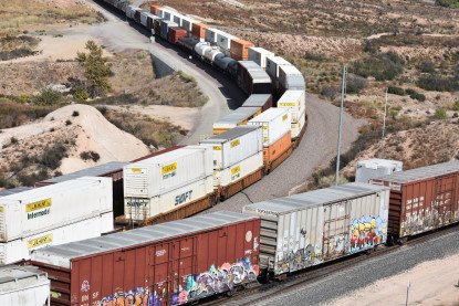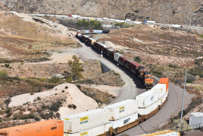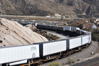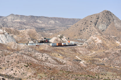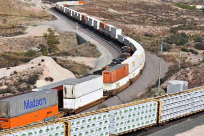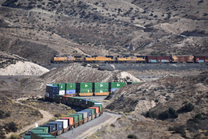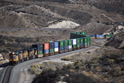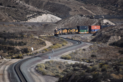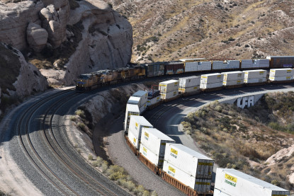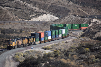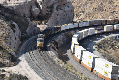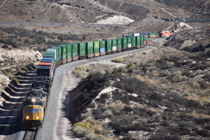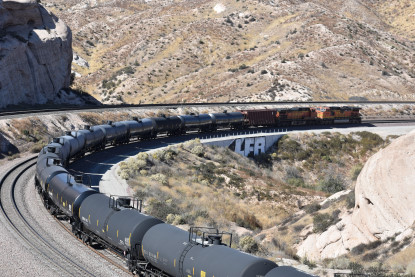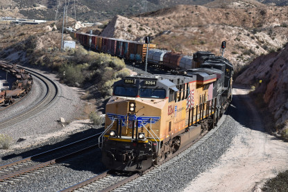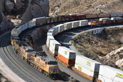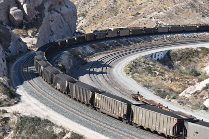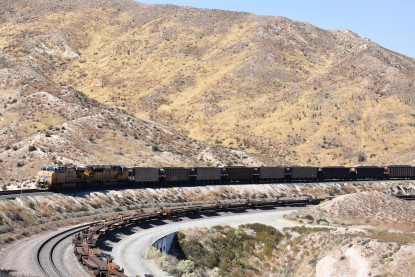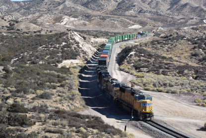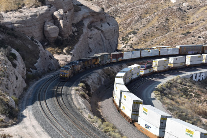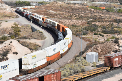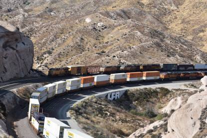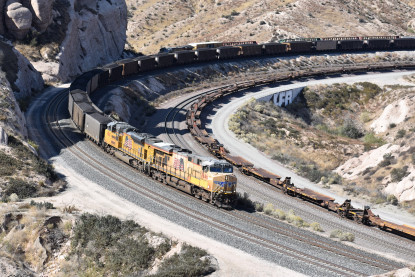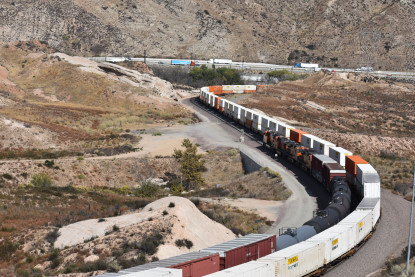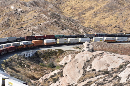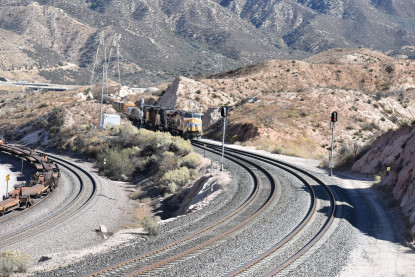 We saw our next train coming down Cajon Pass on the three percent grade.