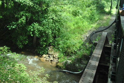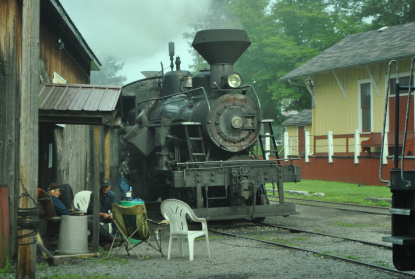 Due to muddy water yesterday they could not water their locomotive so we stopped and for the first time, I saw them use a siphon hose to put water into the Heisler's tender. That was interesting to see being done. We returned to Durbin and I thanked my great conductor for his fine job of getting us back. A special thank you to Mountain Rails for having us today and to the entire Durbin Rocket train crew for a fantastic trip on their railroad. Next the trip to the Elkhorn Inn.