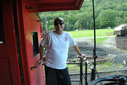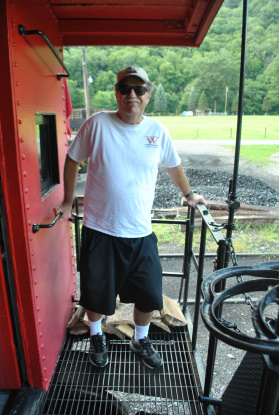 The rear of our train. The train consisted of Cass Heisler 6, Open Air Car DGVR 204, DGVR 710 US Postal Car, DGVR covered open air car 203 and a Durbin and Greenbrier Railroad caboose. Our conductor and his handle is known to me from Trainorders and his handle is Appalachianrails. I asked if we could ride with him on the back platform on the caboose and he said yes!
