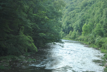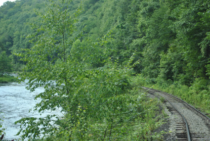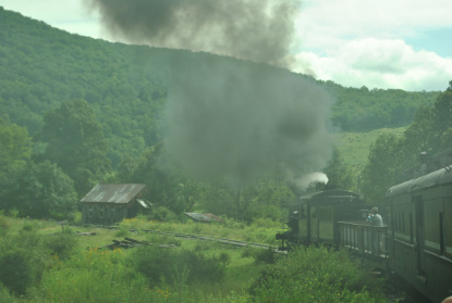 The Greenbrier River. I reboarded and told the lady two stories about cinders one in my eye from Union Pacific 3985 and my hair story from the Western Maryland steam trip. I told her to cry to get it out of her eyes. I talked to the two ladies across from me about the Amish I know in La Plata and they told me about the newly arrived Amish in West Virginia. Once everyone else was aboard the train, the train started back to Durbin with the Heisler now leading the train and a faster trip back.