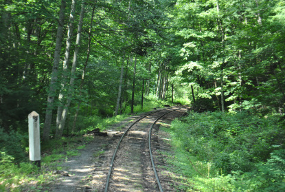 The best curve to catch the engine on this railroad is coming into Elk Creek Junction.