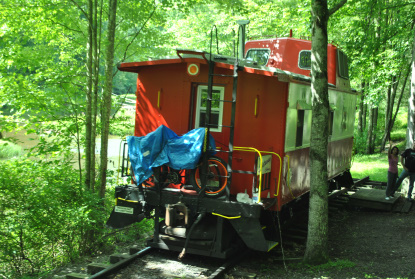 We came to the Wabash Castaway Caboose built in 1947 as Wabash 2794 and later Norfolk and Western 562794. People rent this out and are brought out on an afternoon train and they spend nights here.
