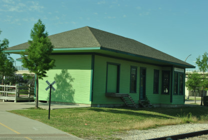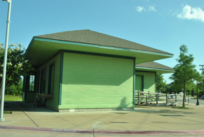 The joint St. Louis-Southwestern and Missouri Kansas Texas station in Carrollton, built in 1914. Across the street is the Dallas Garland & Northwestern Railroad shop area.