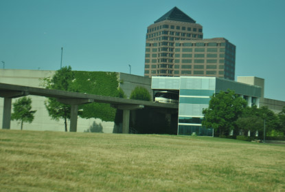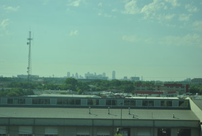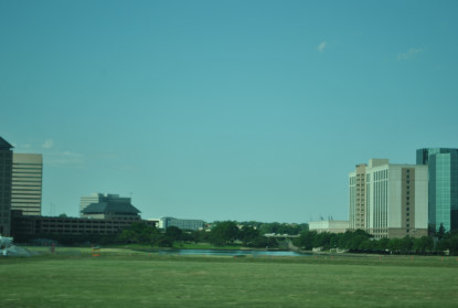 The view of downtown Dallas. After the viaduct it drops to University of Dallas Station.
