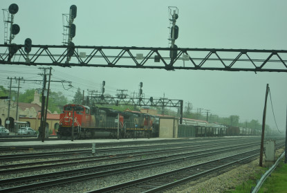 The viewing platform is located just south of one of the few remaining steam-era Illinois Central multi-track signal bridges on the railroad. The south throat of CN's busy Markham Yard is just a few hundred yards north of the platform site. Downtown Homewood offers a variety of shops and restaurants just a short walk from the site, including a Starbucks across the street.
