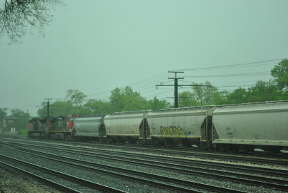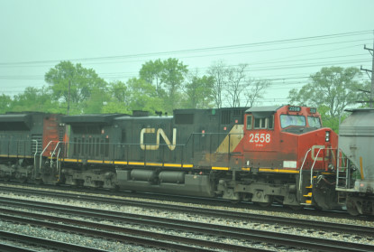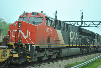 Canadian National 2168 North at Homewood with Canadian National C40-8W 2168, Illinois Central SD70 1033 and Canadian National ET44AC 3078.