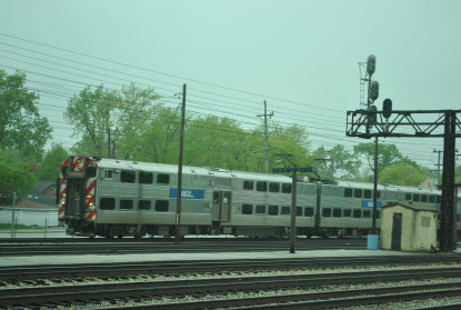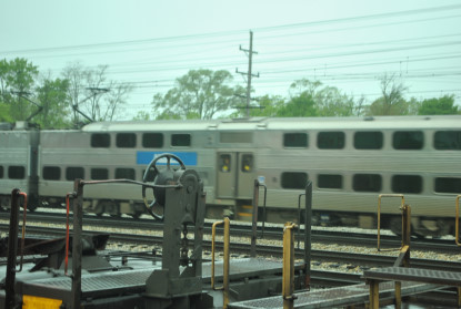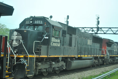 The equipment display is located on the west side of the right of way includes Illinois Central GP10 8408 in the 1990s black scheme and Illinois Central caboose 9426 in the 1960's orange "I-Ball" scheme. An underground pedestrian tunnel connects the east and west sides on the tracks. Do not trespass or try to cut across the tracks. An eight-track mainline is at this park, trains can come in any direction at any time, the electric passenger trains can come quietly and quickly, CN, METRA and local police are strict about trespassing.