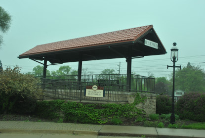 I woke up early at the Country Home and Suites in Moncee and took an ice cold shower since this motel had no hot water. I packed the car then checked the Internet before I returned the key, checked out and drove across the road to put petrol in the rental car then visited McDonald's for hot cakes and sausage to go. I then made my way to Homewood and found my destination for this morning's first stop.Homewood Railroad Viewing Platform