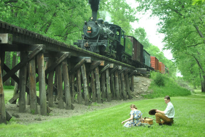 Photo runby 22. Our fantastic actors and actress got into a picnic pose for a photo runby on the south side of the bridge.